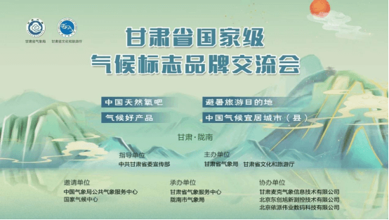 2023年5月9日,由中共甘肃省委宣传部指导,甘肃省气象局、甘肃省文化和旅游厅联合主办的甘肃省首届国家级气候标志品牌交流会在甘肃省陇南市召开。会议旨在打造国家级气候标志品牌,利用甘肃省丰富的气候和自然资源,发展生态旅游、健康旅游,发掘高质量的旅游目的地,推出一批气候条件优越、旅游资源丰富、生态环境优良的县(区)及旅游区和具备气候资源禀赋的特色农产品。